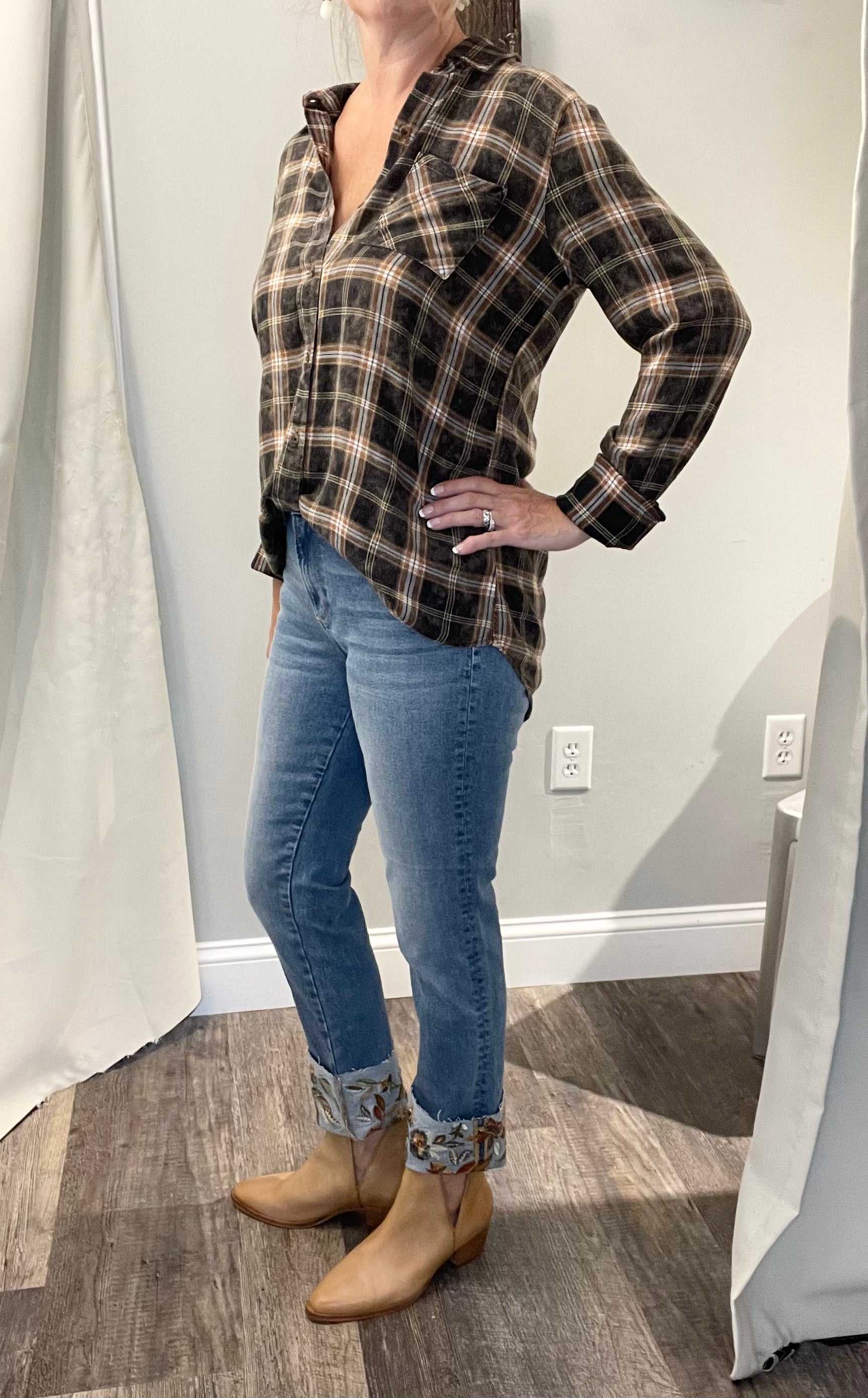 Awesome new Driftwood jeans! Straight leg with adjustable embroidered cuff at the ankle. Very comfortable and true to size, Leaf is wearing a 28.