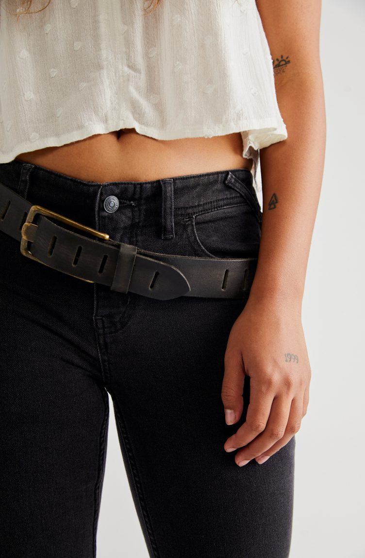 Gorgeous new belt by Free People! Distressed black leather with brass hardware.