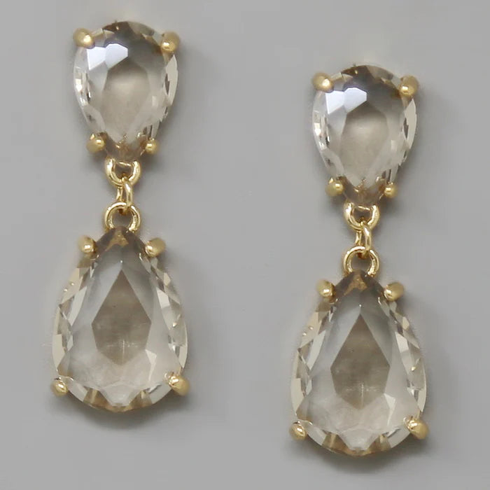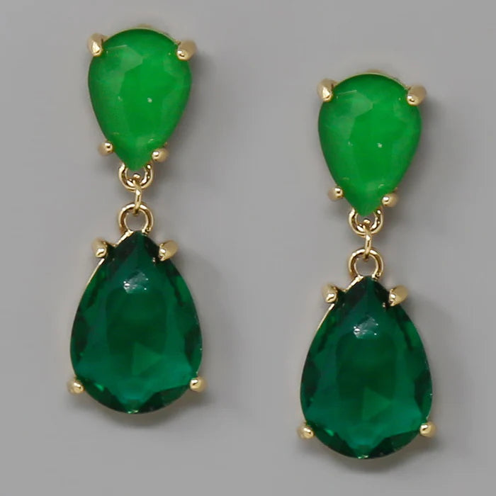 Glass Stone Teardrop Dangle Earrings