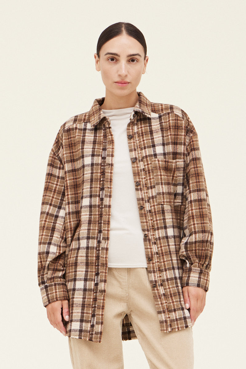 Cozy new oversized shirt / jacket or shacket by Grade & Gather! Cool updated piece with distressing and a large oversized breast pocket. Perfect for Fall / Winter!