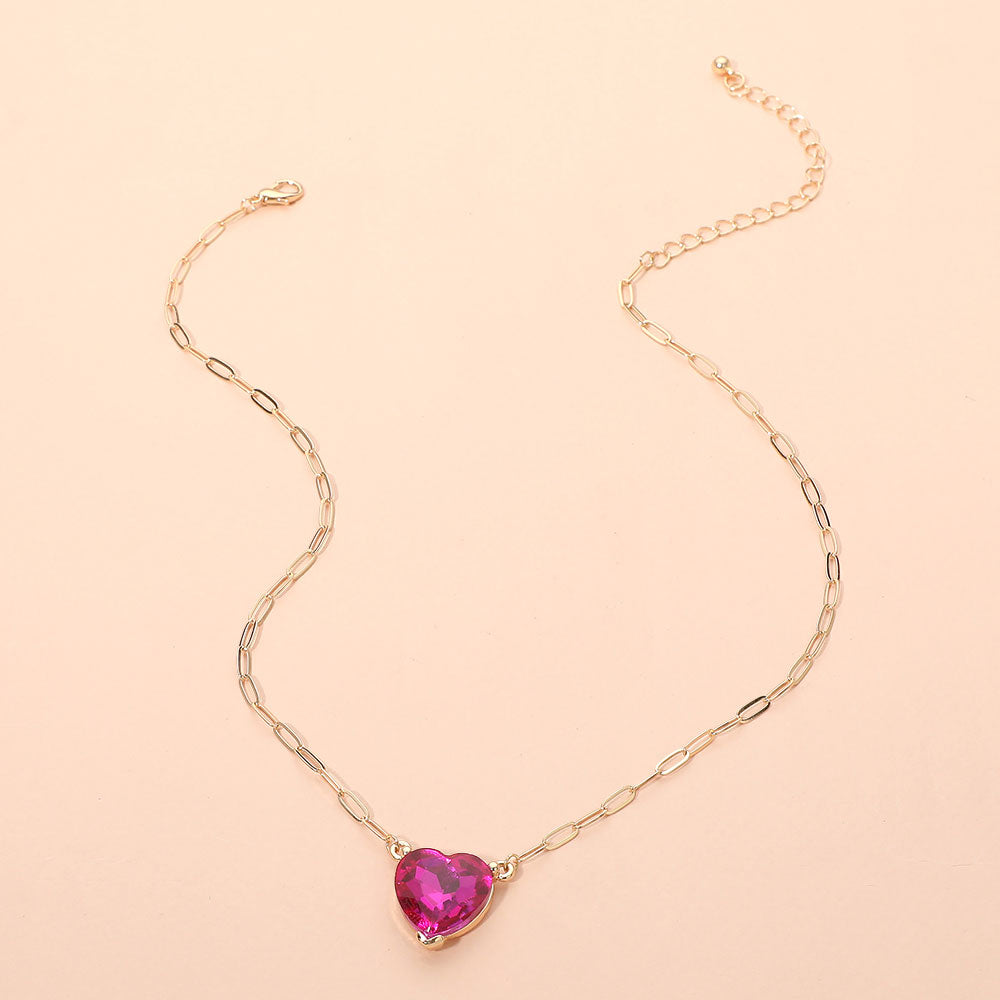 Heart Stone Pendant Paperclip Chain Necklace