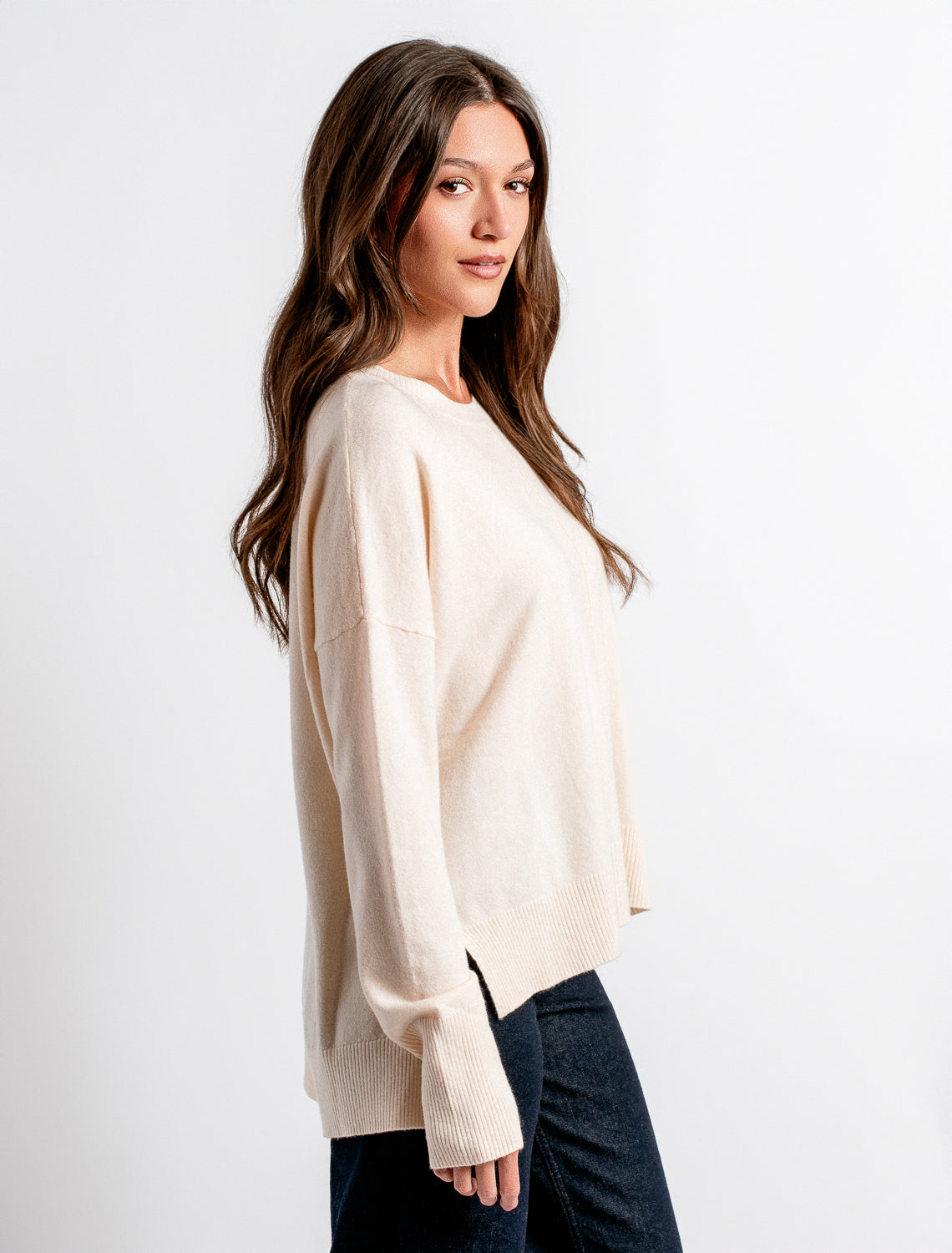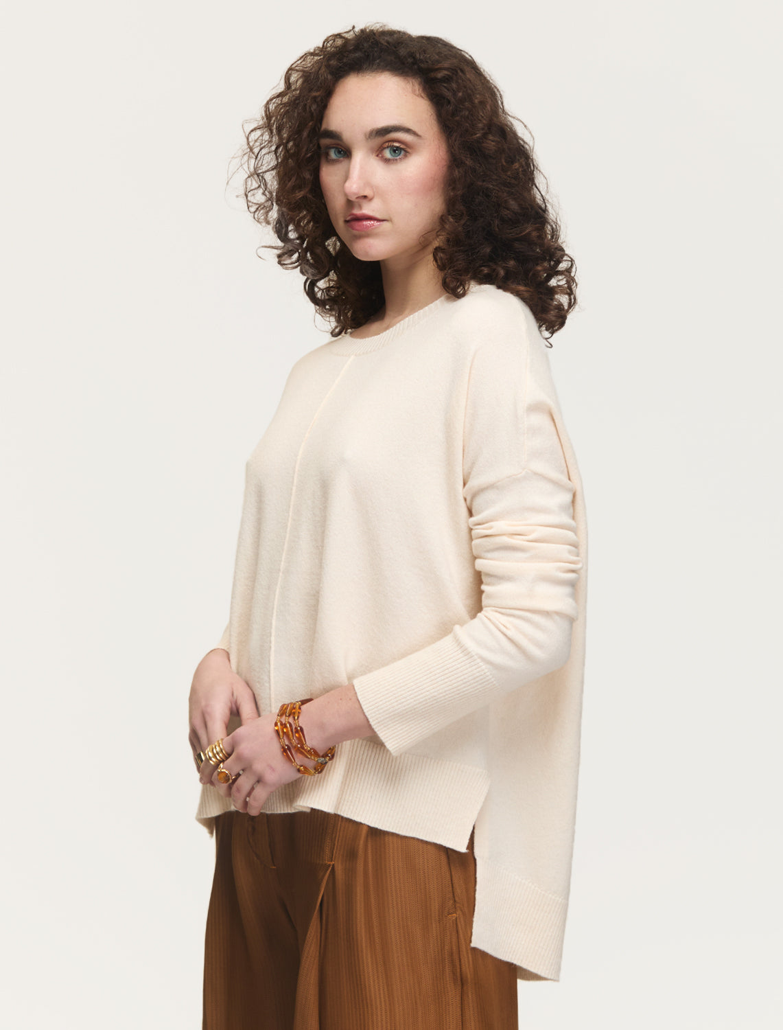 Say hello to style in this versatile slouchy top! The vertical piping, hi/lo side slits and long drop sleeves give it an ultra-casual feel while elevating the design.