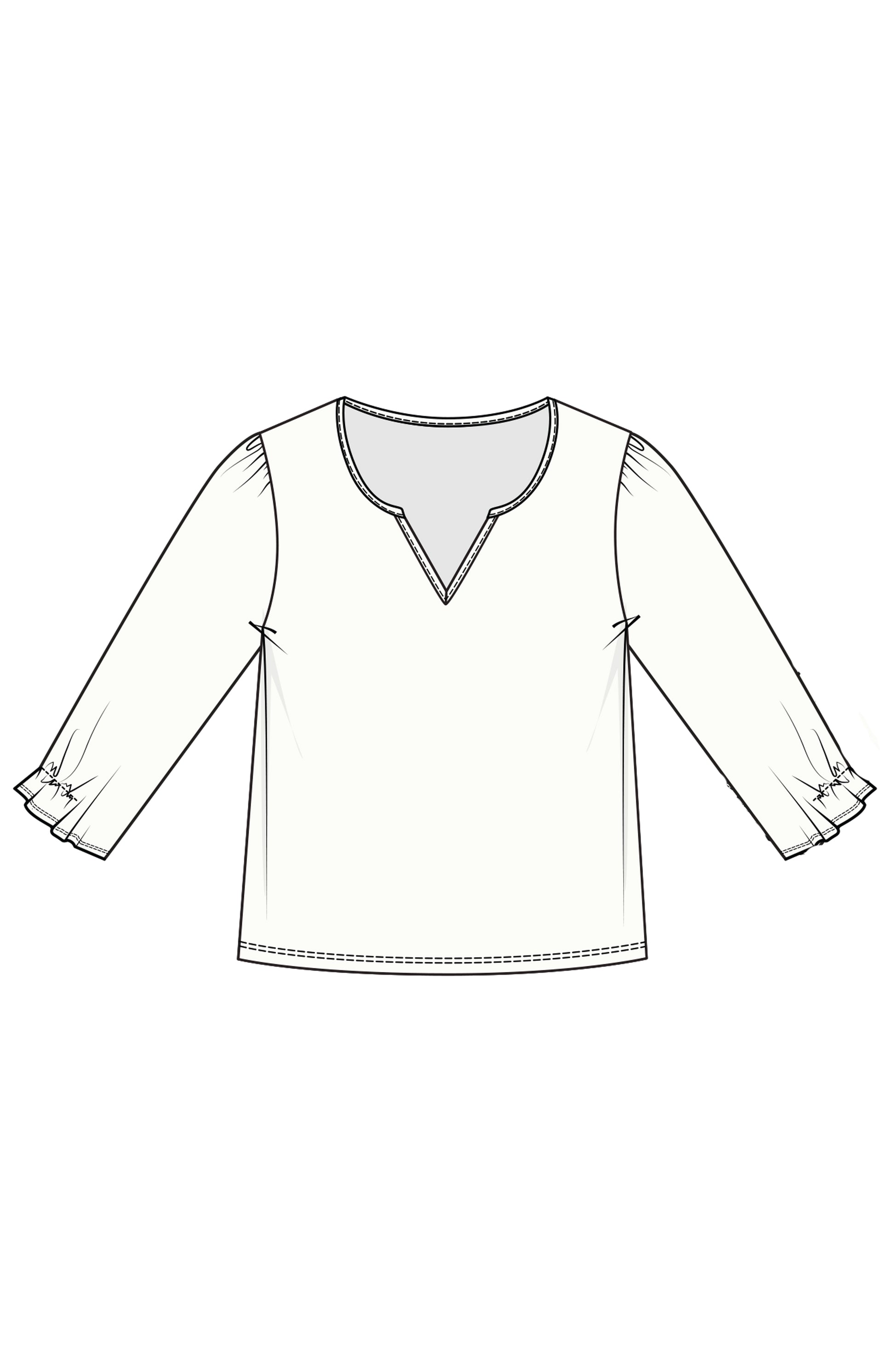 The perfect everyday top that goes with anything! In a creamy white this 3/4 sleeve has a elastic only on the top half, making it very comfortable. True to size.