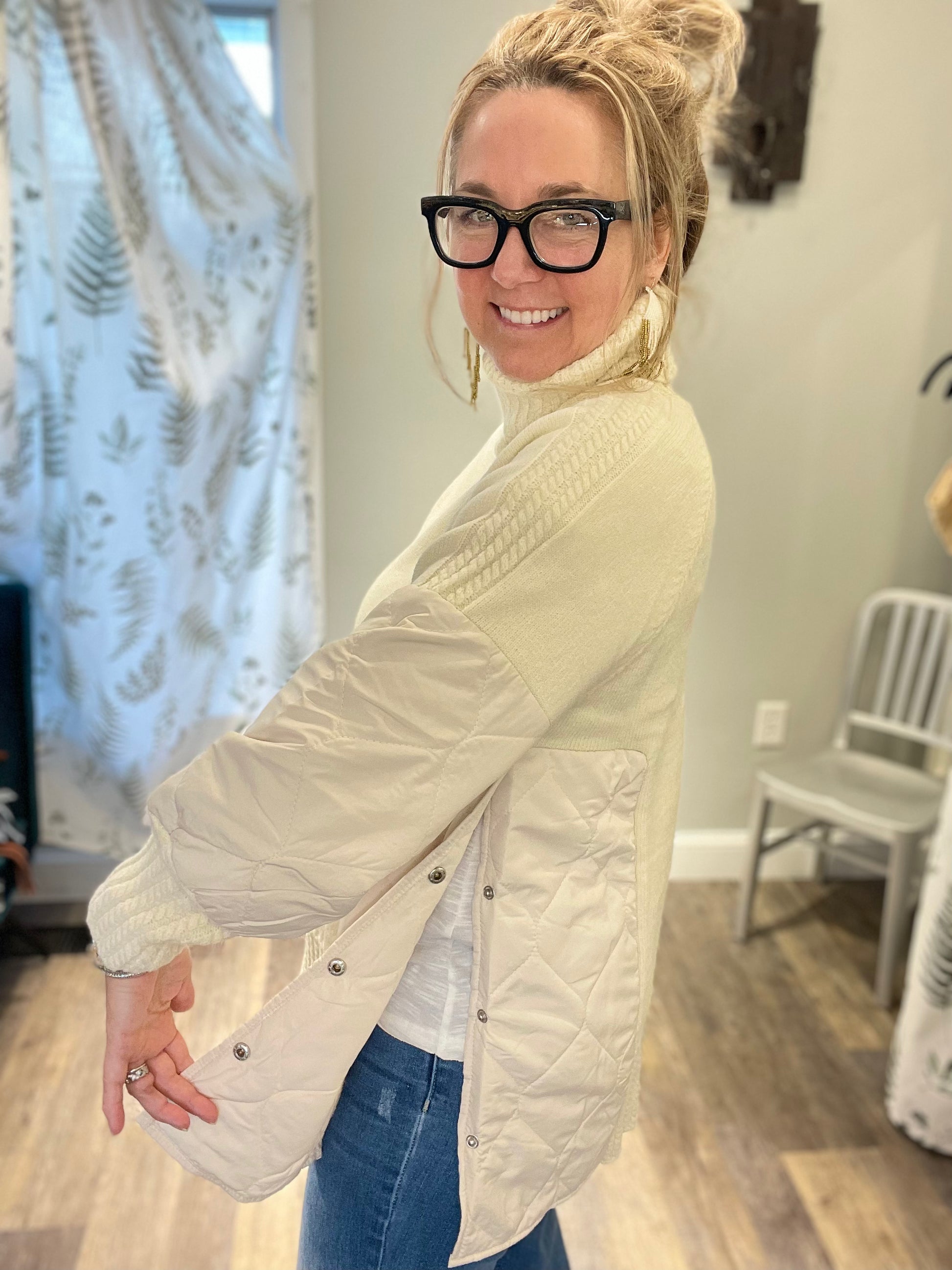 Awesome new piece by our brand new brand, Nekane! Designed in Spain and an oversized fit. Both side 4 snaps and can be worn open or closed. Leaf is wearing a S/M.