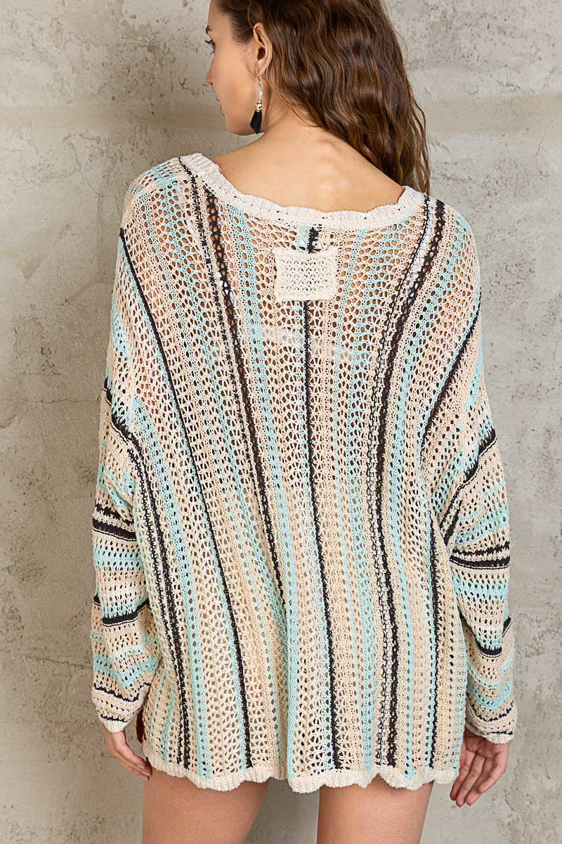 Designed in round neck, oversized fit, this sweater is the perfect chilly summer night piece!