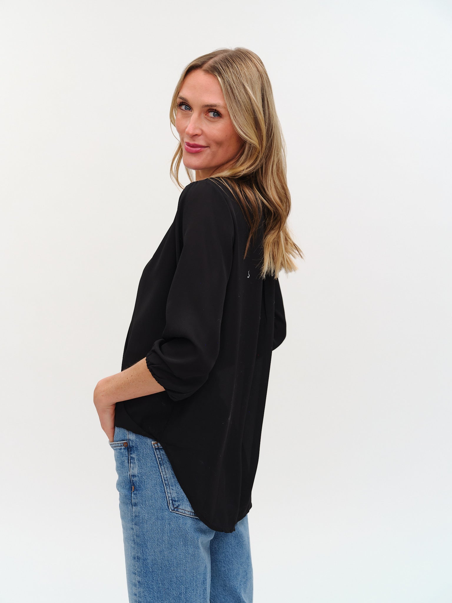 3/4 Sleeve surplus top. Lightweight and perfect to dress up or down.