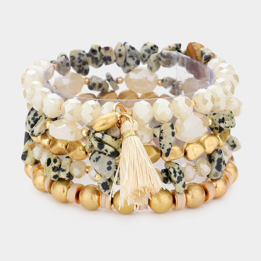 • 5PCS -Natural Stone Faceted Beaded Tassel Charm Stretch Bracelets