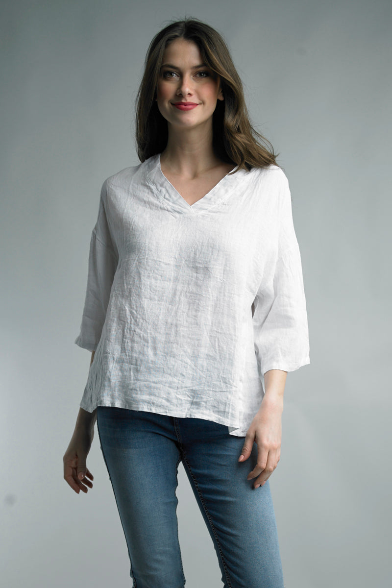 Tempo Paris V Neck 3/4 Sleeve Linen Top